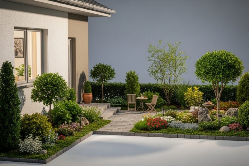 Wybór roślin jest kluczowy, gdy Twój ogród jest nieustannie „na widoku”. Postaw na gatunki, które prezentują się atrakcyjnie przez cały rok.